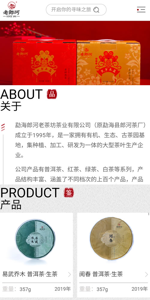 勐海郎河老茶坊茶业有限公司(原勐海县郎河茶厂)成立于1995年,是一家拥有有机、生态、古茶园基地,集种植、加工、研发为一体的大型茶叶生产企业。