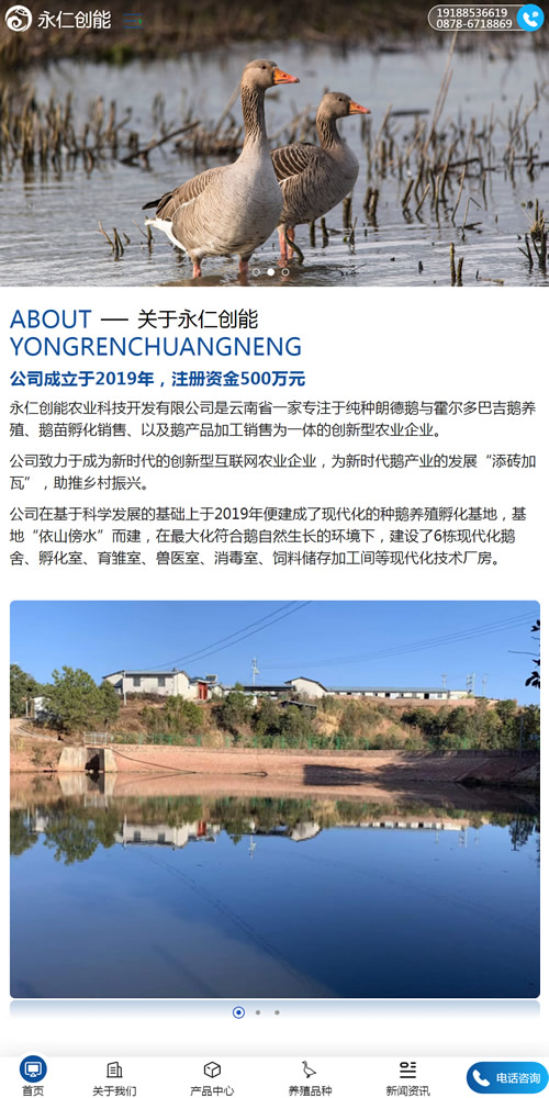 永仁创能农业科技开发有限公司是云南省一家专注于纯种朗德鹅与霍尔多巴吉鹅养殖、鹅苗孵化销售、以及鹅产品加工销售为一体的创新型农业企业。公司成立于2019年,注册资金500万元。公司致力于成为新时代的创新型互联网农业企业,为新时代鹅产业的发展 添砖加瓦 ,助推乡村振兴。