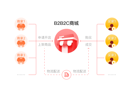 以B2B2C理念出发,供货、零售、批发结合强大的营销功能,打造高效线上商城